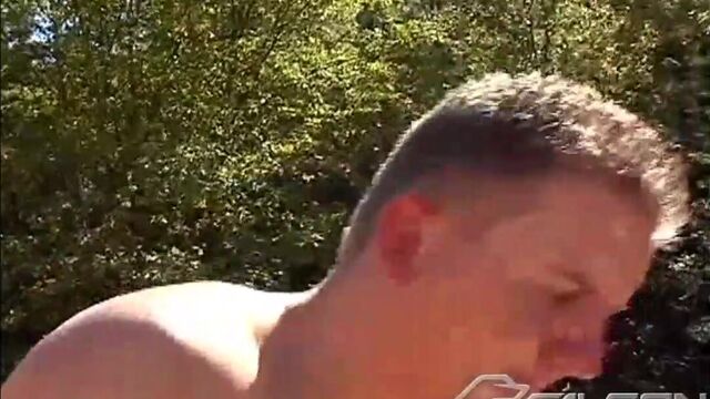 Bosco Blu and Landon Cruise wander about looking for an old mining cave, but end up excavating and exploring each other's holes. Alone in the woods, Landon is down on his knees so Bosco can facefuck him, both men cooing with excitement. Spread out on a blanket, Bosco returns the favor and vigorously sucks Landon's stiff prick. With Landon's legs stretched high and apart, the hunky blond rims his hole. He plunges one finger, then two fingers up the spit-slicked sphincter, preparing it for the fierce fucking that quickly follows.
