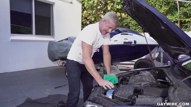 Matthew is working on his step son's car. Jesse loves to fuck and cum, He surprises his father by swinging his cock. Daddy Matthew can't help it can lets himself and bends over. Jesse pounds away until he cums on the car. Matthew goes back to working on the car. but Jesse is ready for round 2. Matthew can't believe how horny he is, he's getting pounded even deeper. Matthew is moaning so hard they have to move it inside the house. Once inside Jesse gets blown. Matthew takes over and really shows Jesse his skills. He rides his cock until Jesse is finally satisfied.