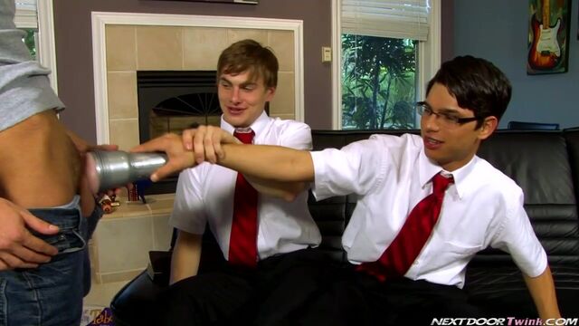 For Noah Brooks and Landon Terry, spreading the Word is an everyday way of life. Patience, virtue and nobility are the characteristics that govern their actions. However, when they knock on Jay Dubbs' door, all that is about to change. Seems Jay has something he wants to spread too, and it has nothing to do with the Bible. Before too long, Jay has convinced these two religious pushers to try something else to ease the doubt and worry: his Fleshlight. Skeptical at first, once Landon & Noah have tried it, Jay knows they'll both be converted into believers. Enjoy!