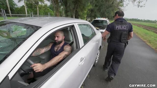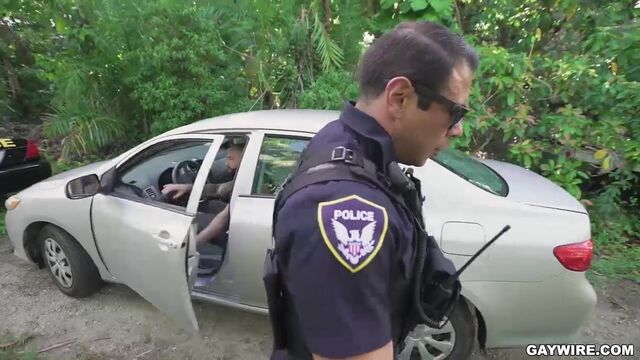 - Description: Sometimes while patrolling, we see some strange things. The other day I got a report of a gray car swerving in the neighborhood. The moment I spotted the car, I pulled him over right away. The reason that the driver was driving this way was because he was masturbating as he drove. So I decided to teach him a lesson. I took him to a secluded spot and made him pop his trunk for an inspection. After inspecting his trunk and finding out that he had nothing but sex toys back there. I decided to satisfy his craving and made him take my cock deep in his asshole and mouth.