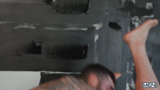 When Enzo Muller walks in while tattooed top Tony D'Angelo is jacking off, he's just in time! Tony makes that ass his own, stroking, spanking, and spreading it. Tony can see that Enzo's got a big hole to fill, so after the bottom is nice and ready, he puts him on all fours to do just that. He uses Enzo in piledriver and fucks him on his side, then pounds him in missionary and breeds that hole as Enzo orgasms.