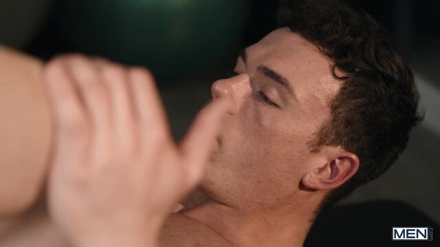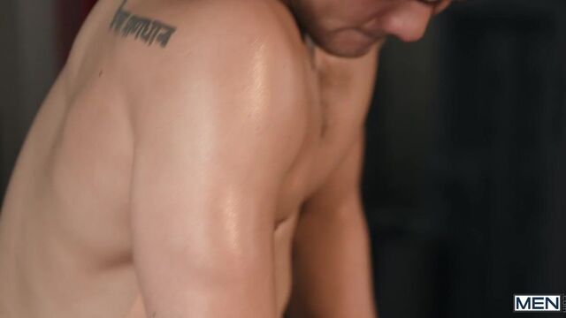 Muscle hunks Colton Reece and Clark Reid's broad chests and big muscles flex as they pump iron in the gym. Colton lets his hands run over Clark's arms and back, pressing his lips to his shoulders, before the guys kiss, and Clark rips his shirt off to let the top's hands touch his bare skin. He sucks Colton, then Colton tongues Clark's hole before fucking him doggystyle. Clark orgasms as he gets pounded on his back, and Colton pulls out and shoots a hot load all over him!