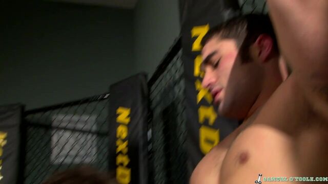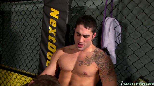 Kevin Crows just seems to lack the competitive spirit. Just doesn't have the edge. It's not that he needs to have a giant ego, or a madman's disposition, but check it out: he lost his first fight the other night, and it doesn't even bother him. Forgot to mention that his opponent was a girl. For Samuel O'Toole, Kevin's trainer, this is just too much to bear. So when it's time to hit the gym again, Samuel has a plan. Since Kevin is so bad at hand to hand grappling on the ground, Samuel has decided to make today's session all about the mat. So the two of them hit the floor, but it soon becomes obvious that Kevin's lack of focus will derail them yet again. In not time, Kevin has Samuel naked and the two of them are going mano y mano in a completely different sport.Enjoy!