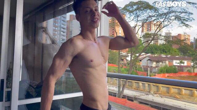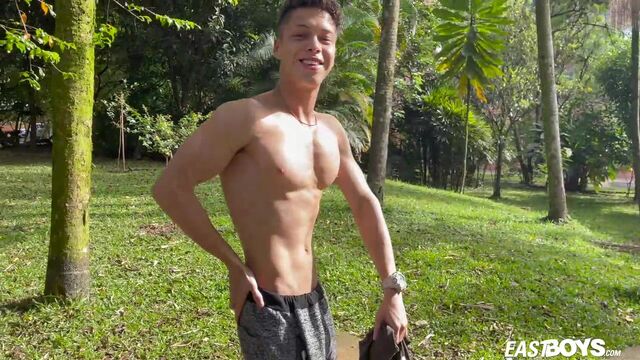 Ricky Iglesias shows his guns outside and while showering - Eastboys