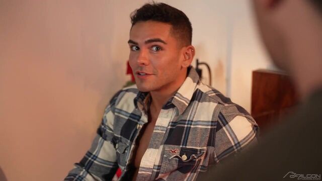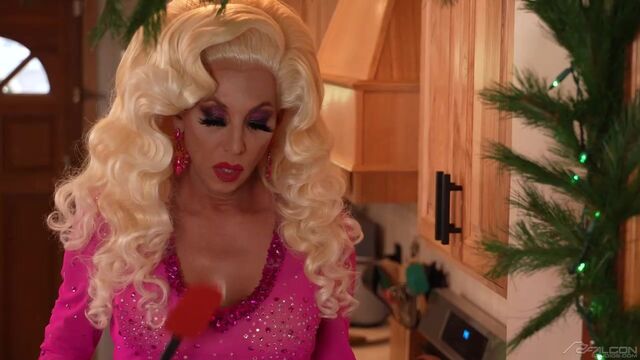 As she does every Christmas, famous drag queen Sherry Vine is opening her home to her chosen family -- and horny couple Damian Night and Presley Scott are the first guests to arrive. Once alone in their room, Presley throws on a Santa hat for a naughty strip tease that immediately leads to him sucking off his boyfriend's big dick and bending over for Damian to rim his thick ass. Presley, ready to be filled with more than just Christmas cheer, then opens up his hole for Damian's bareback dick as he gets mounted and pounded across the bed until he's coated in fresh loads of Christmastime cum.