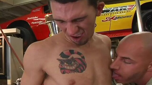 Smooth operating mechanic Justin Riddick shows the new man, James Hamilton, the ropes of teamwork and tool-use in the heart of the auto-shop.