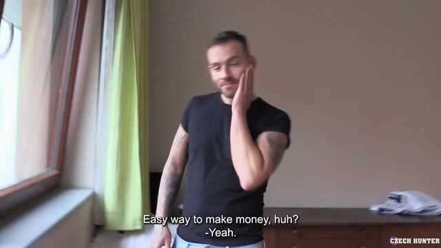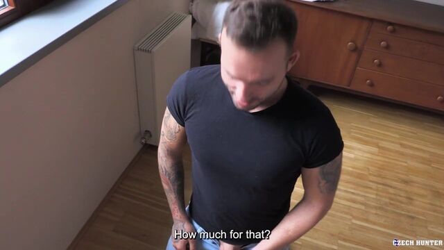I could feel my balls getting a bit too full so I went out for a little walk. While strolling along the river, I noticed a dude sitting on the bank, looking all depressed. The poor guy just got cheated on and dumped by his girlfriend. And before that he lost his job as a welder. Things weren't exactly going well for him... until he met me. Of course he hesitated when I told him what my naughty offer was about. But money was just too good to refuse. We moved to my nearby apartment and I made him show me his boner. My new friend promised me 16 centimeters but it was way more, I loved that dong. Then it was time to take care of my horny cock. The dude didn't really enjoy all this but that was fine. He needed money so there was no other option than go through it. Life sometimes suck.