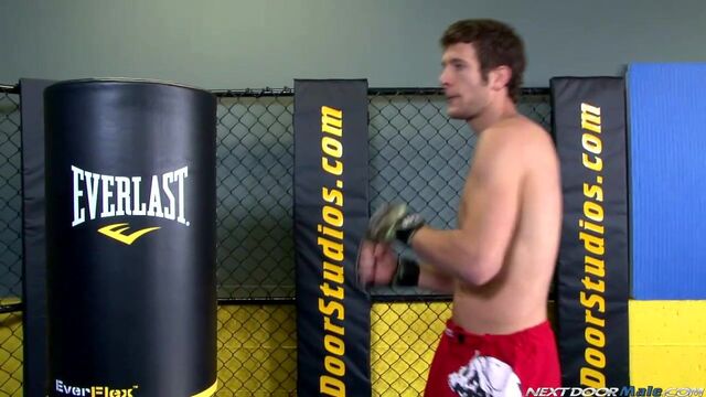 When Spencer Fox works out, he leaves no muscle group unattended. First he does a bit of cardio, then he stretches his limbs and torso. Next some sit ups and push ups, then some contact work on the bag. But its his final workout that keeps him cumming back. Having the gym to himself, he leans on the bag and begins to fondle himself, and before you know it, he's leaning against the cage in a full on stroker's workout from hell. Enjoy!