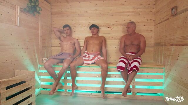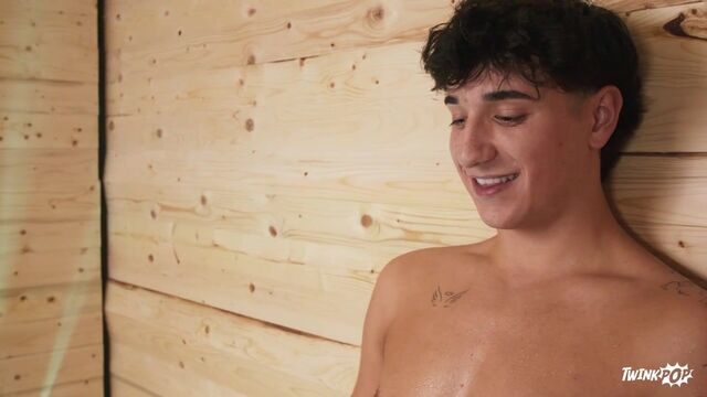Tattooed twink Callum West doesn't have the sauna all to himself for long. An old man hits on him, but Callum brushes him off. When hunky twink Maverick Sun sits down next to him, that's more like it! The guys flirt, and Callum opens his towel to show Maverick his hard cock so the bottom sneakily sucks him. The twinks toss out the horny old dude so they can suck each other freely, and Callum fucks Maverick doggystyle, then on his back on the bench. The sweaty bottom rides Callum's cock, then takes a hard pounding in piledriver till he jizzes all over himself, and he's ready to get another hot load on his face.