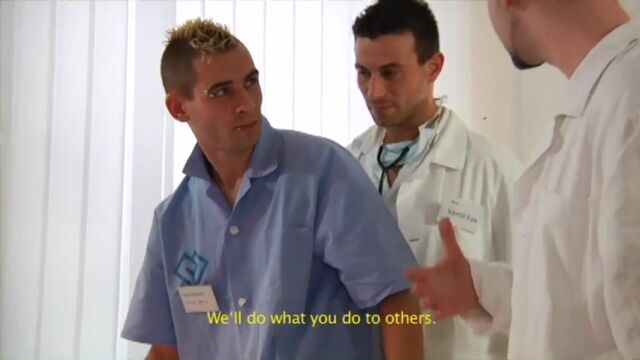 - Description: You’re probably getting the impression now that this really is a hospital like no other – in fact, the more hypochondriac among you will probably be hoping for some sort of medical relapse that would warrant a lengthy stay at this establishment. Well, as if to underline just how perverse and kinky the staff are, here’s a scene featuring Doctors Fox and Bimore taking full advantage of blond medical assistant, Dylan North. He’s a young guy, as we already know, who’s not adverse to a little kink in his daily routine; but whether he ever anticipated being a fuck-bag for his two bosses is another matter entirely. As it happens, he never gets the opportunity to express any opinion. Asked to his knees, his butt-hole is soon playing host to the raw cocks of both doctors in turn; before Fox and Bimore conclude their antics by first emptying their balls all over his face, followed by the contents of their bladders. Little wonder that the fellow looks totally spent and washed-out by the time his two superiors have finished!