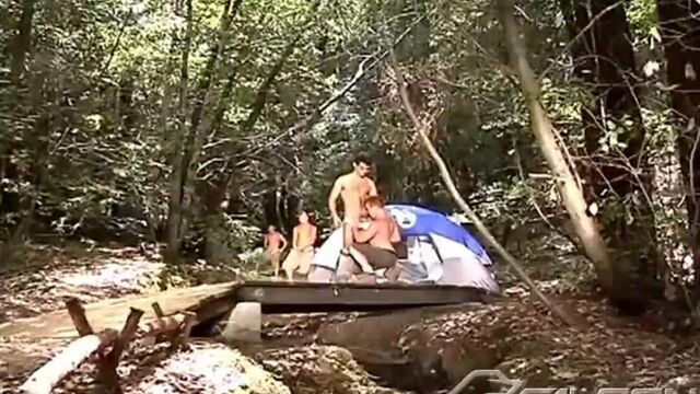 Cole Ryan & Steven Ponce, with Aden & Jordan Jaric. While Cole and Steven think they're sharing an intimate moment, Jordan and Aden are in the background watching and beating their meat. No time to hold anything back as the two campers traverse each other's bodies with their tongues, mouths, hands and cocks.