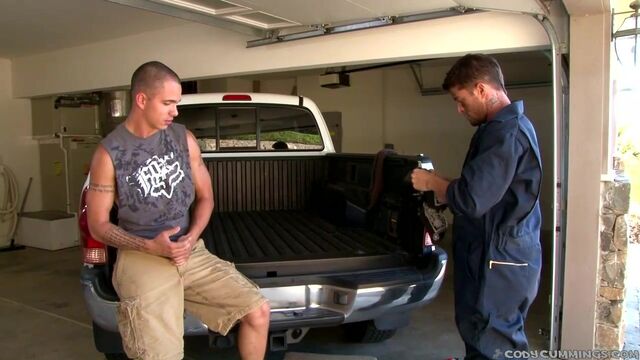 - Description: Cody Cummings, proprietor of Cody's Muffler Repair, is a regular, hard-working American guy. He knows the value of treating his customers right. That's why he's decided to cut Tyler Ford a deal. But when Tyler's girlfriend takes off for the mall with all his cash, Tyler's in a pickle! It's a good thing Cody's willing to explore alternative avenues of payment.After a long day of work, Cody's mammoth cock is begging to emerge from his dirty mechanic's jumpsuit. He can tell Tyler is remorseful and embarrassed about not having the money. When Cody tells Tyler the type of service he wants him to perform, Tyler is completely SHOCKED! He wants Tyler to suck his COCK in lieu of payment. Tyler's never done anything like this before and is extremely reluctant. But when an angry mechanic who's just spent arduous hours on your truck is about to shove his swollen boner in your mouth, sometimes you gotta compromise! Enjoy!