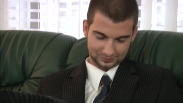 If only all bosses could be more like Lubor Blake, a handsome, tattooed stud with a goatee beard and a definite penchant for his cutesome underlings. Having initially seduced Marcel Bimore into giving him a blowjob, it’s the entry into the room of super-slut, Ari Black, that really heats up the pace. Black’s ass is just screaming out for attention for sure; and having been fucked from behind by his manager, he then rides Bimore’s shaft cowboy-style. Finally, in true whorish fashion, he opens his mouth wide for the generous deposits of both his colleagues. Spunk-sodden and looking like the cat who got every last drop of the cream, Black’s performance is truly second-to-none!