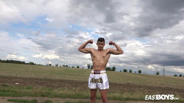 For muscle lovers we have nice video with MMA fighter Breno Gomes. Breno is one ripped dude, and Mr. Jobs does not waste time and gets into feeling Brenos muscles, while Breno is happy to oblige by flexing every muscle he has on his athletic body.