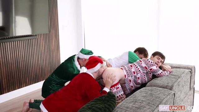 - Description: Dakota and Danny sleep on the couch on Christmas Eve expecting to see Santa and their gifts tonight. The surprise is even bigger when they wake up to find their stepdads Tristan and Nicholas dressed as Santa and his Elf and having some horny fun together. The boys don’t mind them playing naughty, as long as they invite them to join! The twinks open up their Christmas presents a bit earlier as they get to savor their stepdads’ cocks and get a jolly holiday ass-pounding.