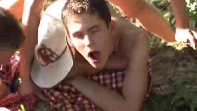 Tommy Sem is wandering near the lake and spies on Sebastian DeLong and Paul Robbins making out. He quickly joins them and learns that Sebastian is the 'longest' cowboy in the saddle. Sebastian fucks them both, side-by-side, and delivers a