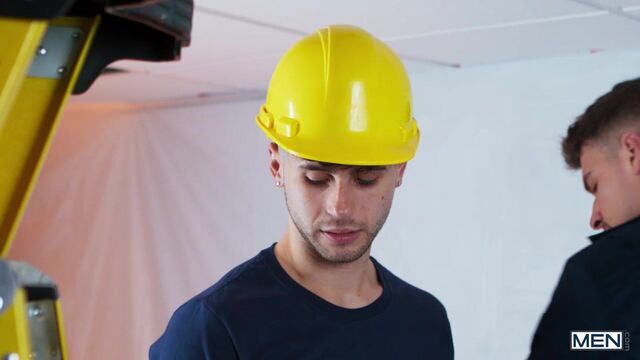 Michael Vente is new on the job site, and the more he watches experienced hunk Malik Delgaty at work, the more he wants a fuck break. When Malik goes up a ladder and his hard dick slips out his coveralls, Michael finally gets his chance to suck it, and then the top bends him over the ladder to fuck him! Michael rides the big dick and gets pounded in piledriver, then fucked hard on the floor. The bottom cums as Malik drills him in doggystyle and the top cums on his