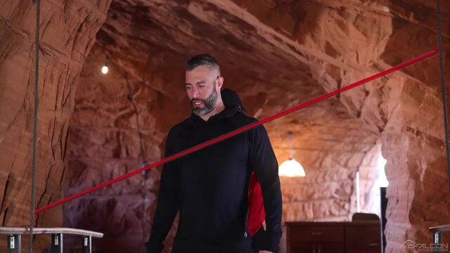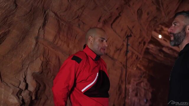 Porn star Sean Zevran has made a surprise visit to the organization' top-secret desert training facility to present Cole Connor with an offer he can't refuse. After Cole accepts and assists with sneaking Sean into the agency's cavernous hideout, the two decide that they need to release some of their new-found adrenaline. With no one else around, Cole falls to his knees to suck Sean's big dick and rim his muscular bubble butt. Next, sitting on one of the cave's many bridges, Sean rides Cole's hairy bareback cock before getting on his back and spreading his beefy thighs. A few more pumps into Cole's ass then has Sean blowing his load before Cole pulls out to add to the pool of jizz on Sean's six-pack.