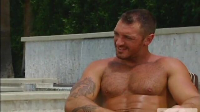 Exclusive Francesco D'Macho and C.J. Madison are sitting around the pool, showing off their big meat. Both men have more cock than their small speedos can contain and D'Macho falls to his knees to worship Madison's 10+ incher. Next D'Macho stands up and fucks Madison's thick pouty lips, followed by his giant round ass. Madison aggressively throws D'Macho into a nearby chair and finger-fucks his hole and sucks his uncut cock. D'Macho orders Madison to put his big dick inside him and Madison eagerly complys, pounding D'Macho's hungry hole from every angle. Both men stand up and jerk off, shooting huge loads onto the camera lens below.