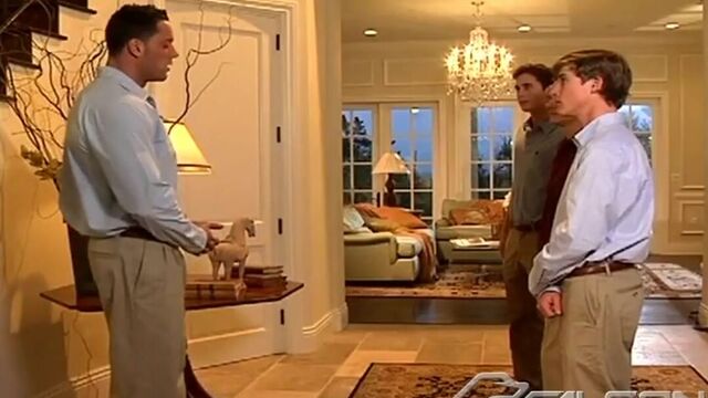 The three chosen Ivy League candidates arrive in Los Angeles for their mysterious initiation. Jason Adonis is joined by Ryan Wade (Evan) inside the in-house weight room and is instructed on some body image sculpting skills to match his highly political background. The two bench, push and pump until Wade succumbs to Adonis' shaved cock and balls both orally and anally.