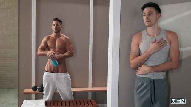 Kane Fox watches hottie Roman Todd pumping iron at the gym, and he sees his secret protein shake recipe: the muscle hunk jacks off and jizzes into his cup! After Roman hits the showers, Kane steals the rest of the elixir and gets pumped up for his own workout. Roman catches him with the evidence all over his face, so he decides Kane will just have to help him make more and tells the bottom to suck him. Roman rims Kane and pumps into his hole doggystyle. Kane rides the top on the floor and the bench, and cums as the powerful top strokes into him in missionary before he takes another hot shot of protein, straight from the source!