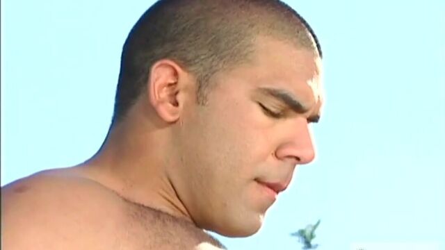 Sun worshiping Exclusive Vinnie D'Angelo stands by the pool, spraying himself with oil and rubbing himself down. Nick Marino enters just in time to help D'Angelo with his back. Before you know it, D'Angelo has Marino's thick tool out, which he takes to the base. The two men move into a sixty-nine position on a nearby chaise lounge. D'Angelo mounts Marino's face for a deep rim job while he goes to work on the hot Latin cock. Insatiable top D'Angelo works Marino over onto his shoulders and proceeds to fuck him deep. He pulls out, flips over and sucks Marino's cock until he shoots his load. Marino does the same.