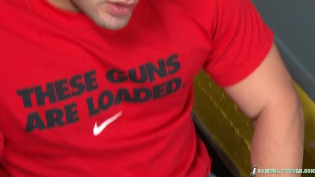 They say no man is quick enough to catch a fox. Well whoever said that never met Samuel O'Toole. Sammy was minding his own business, jerking off in the locker room bathroom stall like usual, when he heard someone enter the bathroom. Through an inexplicable and serendipitous hole in the wall, Samuel spies a young man by the name of Spencer Fox.When Spencer notices someone peeking out, he decides to pull out his own throbber and do some stroking himself. Soon Samuel's dick emerges from behind the wall and Spencer finds himself helplessly drawn to it. After he sucks the fat, pulsating mystery cock for a while, he opens the stall door and invites his new bathroom buddy out to join him. After tasting Samuel's thick boner, Spencer couldn't wait to take a hard pounding in his tight, tender asshole. But these guys better be discreet; this type of activity in the gym locker room is at least STERNLY frowned upon, possibly even prohibited! Enjoy!