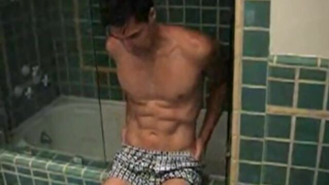 Before he was fully boned, his cockhead was peeking out the legs of his boxers and by the time he shucked his drawers and got in the shower, that mighty meat, standing at full mast, made a dark shadow like a lunar eclipse and he soaped and stroked until he was throbbing!Some guys are so hot; they are like candy for the eyes. Pete's handsome face would have been enough, his lean body would have been enough, those shredded six-pack abs would have been enough but the object of your sweet tooth is a thick, cut throbbing nine incher and with cocks like that and guys like this, that's something we can never get enough of.Unlike some guys who think they are doing us a favor just allowing them to be in their presence, Pete was so eager to please, wanted to make sure the camera got every nook and cranny of that incredible body, that etched midsection and that dick that never seemed to go soft. He has one of those heavy hangers that stirs your own loins because you just know something that big and soft will grow to monumental proportions and again, Pete has more enough to go around. We were jealous of the soap suds that got to cover his body but especially we envied his fist as he fucked it like he was impaling a last hole before going off to a desert island. He began to breathe heavy, clearly as lost in the joy of his own body as we were before covering that coiled belly with a nut that was boiling down from those balls!