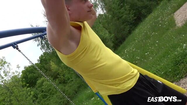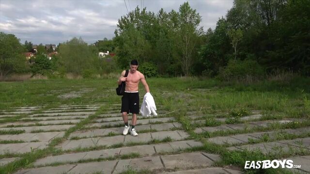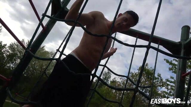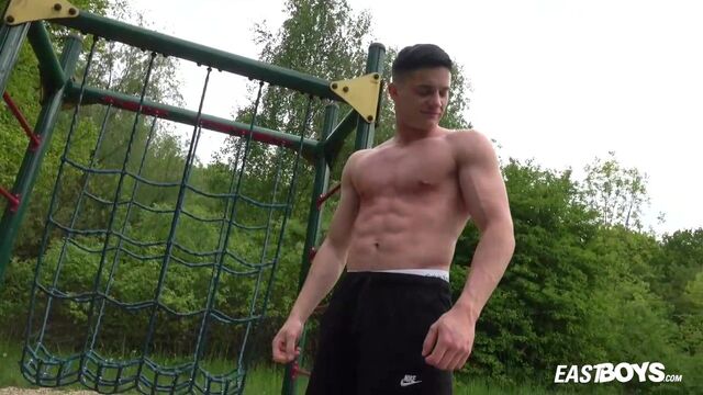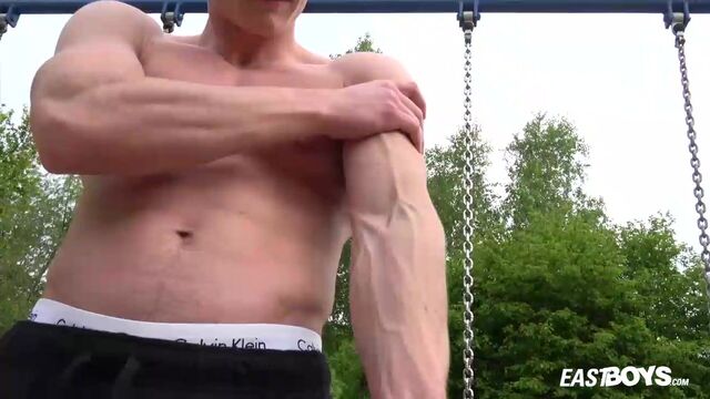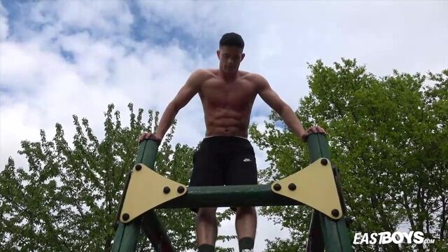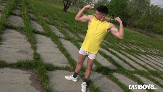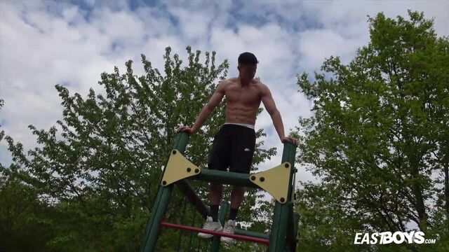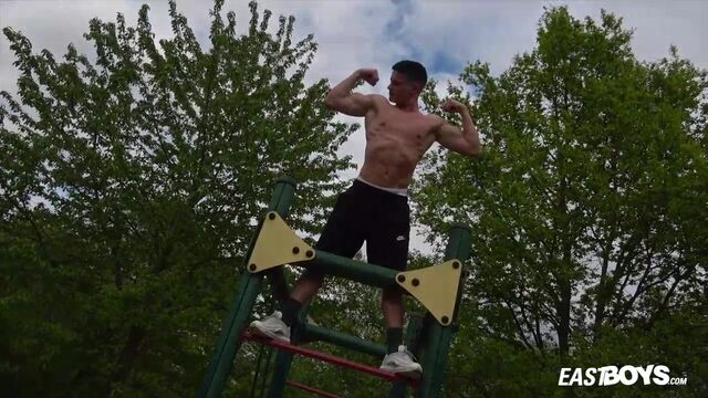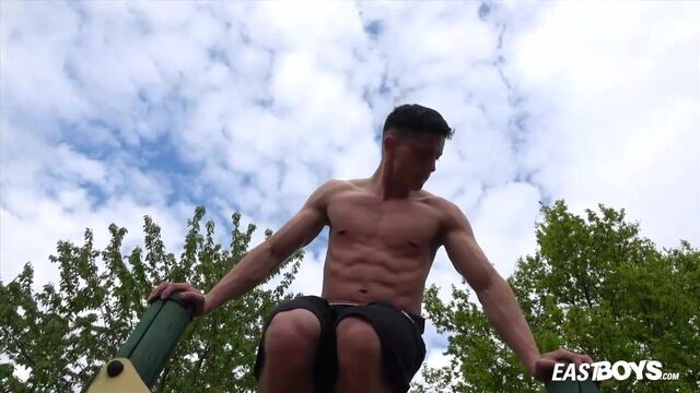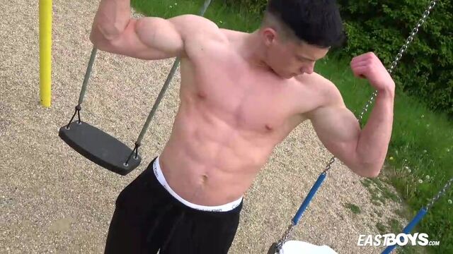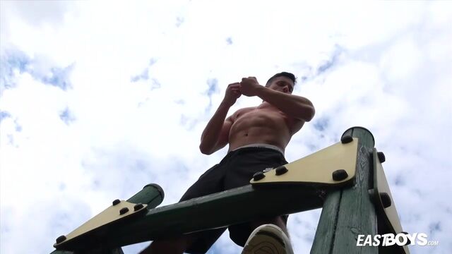 Beefy guy works out and spotlights his crotch - Eastboys