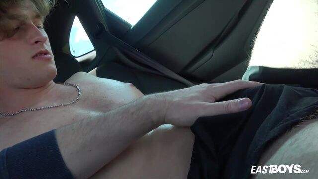 Hairy guy Nikolaus Viklund gets stroked in the backseat - Eastboys