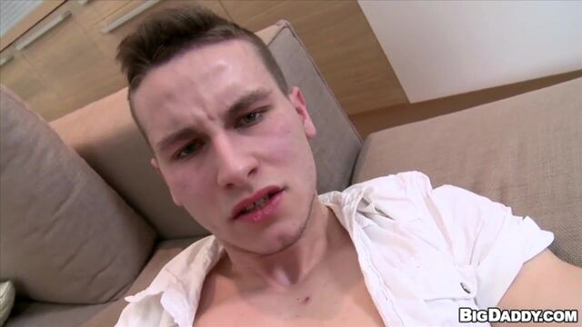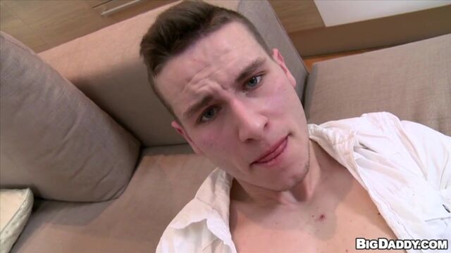 Jack comes to the office for a job, only to walk in on a dildo staring at him. Paul Fresh tries to act innocent until he aske Jack to sit on the dildo. Jack either loves the way it feels up his ass or he needs the money. After loosening that as up, Paul Fresh lid on the couch so Jack can ride the dick. Riding the dick as Paul jerked Jack's cock off. Pounding that tight ass just right. Then busted a nice load of cum on his face. Sweet!
