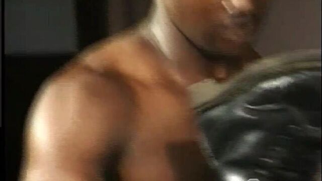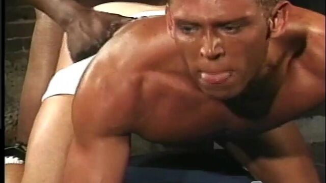 Troy Maxwell is hungry for action, stroking his big black dick and looking as tempting as sin, waiting for someone to bite. Kevin Kramer approaches and falls to his knees to fellate that thick slab of dark meat. It is huge and Kevin breaks into a sweat as he wraps his white-boy lips around the big manââ¬â¢s love muscle and swallows it whole. Troyââ¬â¢s getting hungry himself so he rips Kevinââ¬â¢s briefs off and jabs his tongue in and around his pink asshole. Then he rams his rod deep into Kevinââ¬â¢s buttcrack and fucks him hard ââ¬Ëtil they both shoot their wads.
