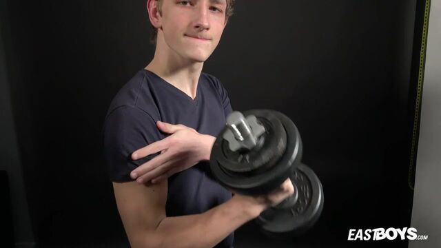 We have quite an eyecandy for you! Alan McKenzie, who just turned 18, athletic cute guy with smooth body and nice muscles, at his first ever modeling experience and solo gay action! After some muscle flexing and lifting weights Alan will strip, and cock comes out, and that's not all, Mr. Hand Jobs comes to the rescue!