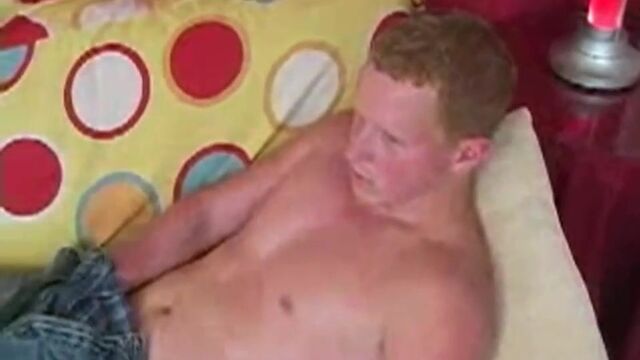 When Diamond Dick called and said he had a younger brother with even more overactive hormones the his, only question was how fast could they get here! This 19 year old, red haired college wrestler bounded in the room and while there was no family resemblance on the outside, that massive bulge in his jeans let us know he was packing heat, sharing at least one big branch of the family tree!Despite the copper colored locks, Mr. Wood, who more then lives up his name, is amazingly freckle free, naturally smooth and though at first we thought he shaved his pubes, upon closer examination you will learn his pubes are so pale in color, they almost disappear against his rosy skin. He was a little shy at first, totally unaware of how blessed he was in the meat department. When he finally let it spring free from his boxers, that might stick stood out like a flagpole ad was already dripping in anticipation of what was to cum!Like his big bro, he was the strong silent type but liked the attention of the camera and seemed to find a sense of freedom, letting the the lens come in close on his hard pink nipples, across that tight, swollen ball sack and over those creamy white, perfectly rounded jock butt cheeks as he humped the couch like he was giving some lucky cheerleader the ride of her life. The, with barely a moan, he comes in close, and we mean that literally, and busts a big, varsity sized nut all over the black leather pillow that left his fingers still dripping as he waved good-bye! Now that what we call a Labor Day Salute CircleJerkBoys's style!