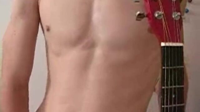 What's hanging off the thin body of this skater guy is definitely man sized and packed with the juice that would the whole varsity team proud. It's always the innocent looking skinny types that produce the biggest surprises and Mike Hawk is a perfect example with the caveat that we know they also produce some of the biggest loads.With those blue eyes and a mop of hair you just want to run your fingers through, his nips pierce his wifebeater like twin pencil erasers off that hairless, lean chest. It's when he leans back, revealing a patch of pale fur under each arm that things heat up as his clothes come off in rapid fire and what he picks up next is his shiny red guitar. He starts to strum a few chords and damned if that wasn't like a snake charmer's song as his cock goes from limp to rock hard and dripping, throbbing at twelve o'clock with the shiny knob keeping time and hitting high note well above his navel. And there's more nickels left in this juke box...Unlike most straight guys, he has no problem showing off his smooth, untouched ass,. even bending over and letting that big dick and bull balls dangle in between before fucking the mattress like a booty call long over do then rolling on his side and humping his fist like a prime hole he's been dying to sink into. His sack doesn't just tighten, his balls swell until they look like will explode and that's just what he does...he stands up and fires off that hose all over the guitar and the chair in a symphony of white stuff that's definitely deserves an encore.