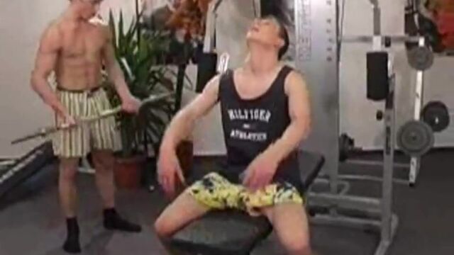 John Vulcan and Roman Atkins can't help but admire the perfect bubble-butt of the towelboy, Daniel Murdoch, at their fitness center. When Daniel joins them to do some curls, Roman'scock nearly rips through his shorts and John is right there to