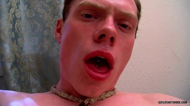 Some boys really love the feel of a hot cum load splashing out into their cute face while they're in the throes of pleasure, and when a boy like Aaron only has his own cock to pleasure he finds a way to make that happen! Check it out as the handsome young man jerks on his tasty tool and delivers a great splashing mess of cum right in his own face! We would all love to be there to add our own load for him to taste too, right guys"