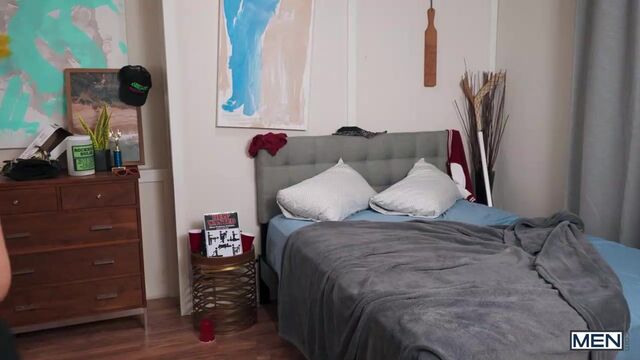 Ashton Summers is chilling on the couch at the Summa Cum Load house when he finds a dildo and decides to use it. But just as he's about to fuck himself, Michael Vente and Trevor Brooks stumble in, making out and ready to fuck. Ashton tells them to get a room and peeks in at them as Trevor pounds Michael on the bed, getting a naughty idea. He yells that Michael's car is being towed, and then sneaks in to take the bottom's place, covering his face with a pillow. His plan goes off without a hitch as Trevor comes back and starts fucking his hole! When his ruse is discovered, Trevor assures the bottoms there's plenty of dick to go around, and these frat bros enjoy a hot threesome as first Ashton and Michael share Trevor's cock, then Trevor and Ashton take turns using Michael's hole and they even form a train with Ashton in the middle before the guys cum.