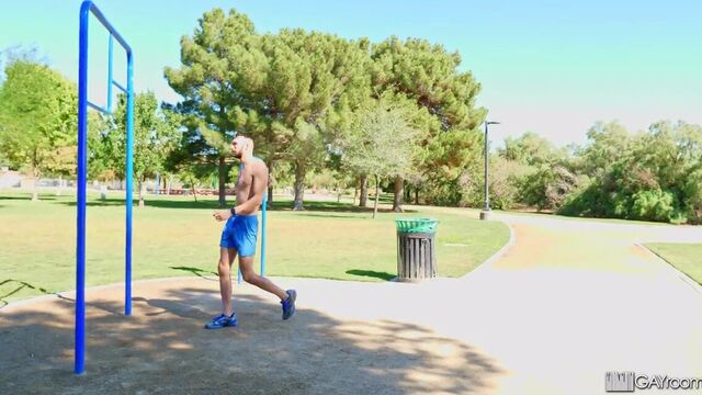 Friday afternoon workout leads to an anonymous pump and dump back at the crib.
