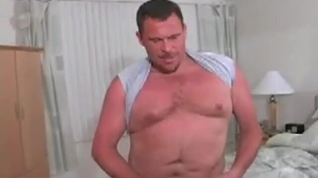 Brick is like the football player you knew in High School who had nothing more then balling on his brain. He grew up into the football coach who thinks of nothing else either. From the start, in his cut off grey T-shirt and yellow practice down to the tightey-whiteys underneath, Brick is one third jock, one third clown and one third sex kitten all rolled into one. Guess there is a fourth part and that is a big ham too. Brick loved being in front of the camera as much as anyone we have every filmed. The faces, the comments, the way he stripped off every piece of clothing until he worked that cock and sent off a load that definitely flew over the goal posts!