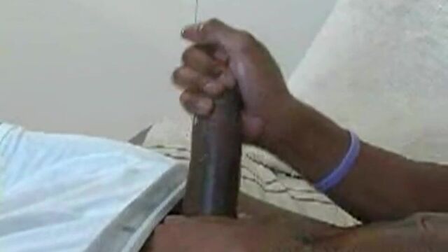 Justin says his friends have many names for him but after we that pole that at most conservative assessment would be called 'humongous,' we christened him 'B.L.D;' Big Large Dick. At 6'1' and 190 pounds of the leanest cocoa flesh we've have every seen, we're sure a good portion of his body weight has to come from that 11', wrist thick fudgesiscle of a cock. The shaved head, handsome face, sensitive eyes and so sensual, kissable lips top a perfectly smooth torso that is ripped, lean and just to throw a bad buy edge to things, a couple of tats. His abs are an essay in perfection and as he oils that torso and tugs down the waistband of his boxers, he gives us a glimpse of the single line of hair he left that acts like an exit sign to the dick you have been seraching for your whole life. His snowy white can barley contain that 11' giant and it literally comes out the bottom of the leg, the big head already leaking, before he shucks them for good and reveals where his other nickname, '11 strong' came from! He pauses every so often, talking right to you, aware of the power he posses in his hands and how badly you want it. Laying back, stroking hat pipe that could easily be three handfuls full and still have the big head sticking out the top, exposing just a hint of that untouched hairy hole as the ball sack above starts to tighten as he reveals he has needs of his own. This is a man in total control of himself and doesn't release his seed until he sees fit and when he does, he look right in the camera and doesn't shoot, he lays back and lets it slowly ooze out like the white caps of the tide as it kisses the sand. This was his very first time in front of the camera and we can't wait to see what he does next time now that he has his sea legs!