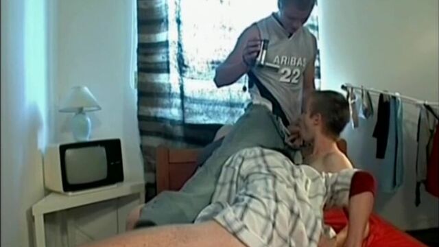 A cute, blond student is hard up for cash. He answers an advert offering easy money; all he has to do is agree to be filmed having sex with a slim teen lad. Reluctantly the student agrees, the horny cameraman co-ercing him out of his clothes - but pretty soon he's well up for it, fucking the young lad bareback while sucking on the cameraman's thick cock. To bring the scene to a sticky climax the student gets his peachy ass fucked raw by the camera guy, before spunking all over his face.