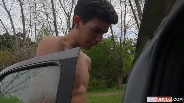 Uriel picks up Tony, who needs a ride to Buenos Aires. The trip is one Uriel is familiar with. But on the way to their destination, the car begins to act up. Uriel tells Tony they’ll need to go idle for a bit while the car cools down. Uriel is a bit embarrassed and won’t charge Tony full price for the ride. Though Tony really doesn’t mind. He actually thinks Uriel is pretty hot and wouldn’t mind playing around while they wait for the car to cool down. So Uriel whips out his cock and lets Tony blow him as much as he wants. Tony is able to take Uriel’s cock in his mouth effortlessly - he’s certainly done this many times. They have their fun, knowing it’s risky doing it in a public place. But they don’t care, and Uriel wants to feel Tony’s hole. Tony bottoms at first and lets Uriel fuck him hard before they switch positions. Uriel then lets Tony be top. When Tony is ready to cum, Uriel lets his new friend finish in his mouth.