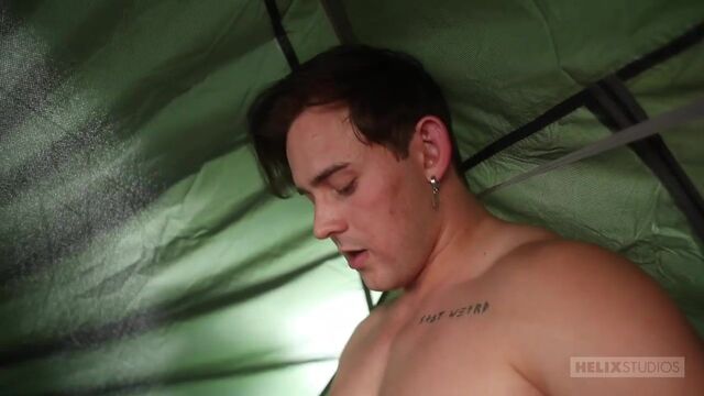 Josh Brady and Kane Fox fucking in a tent in a 3some - Helix Studios