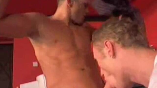 Back at the offices, Robert is the first to deliver his story. Ashley starts to read the horny tale and begins to get aroused. Robert starts to grope him and discovers that his boss' cock is the thickest piece of meat he has ever seen. No problem, Robert
