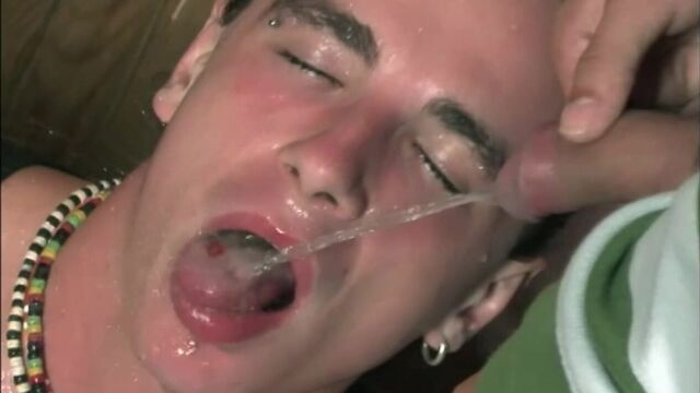 - Description: The scene starts off as a hot threesome, with two Twinkies filling their mates mouth with their cocks, getting him to eat their cum, then the DJ and his blond mate join these three guys and piss flows all over one of the begging willing piss takers. The last part starts off with the DJ boy Twinkie peeing in a urinal and he soon gets another Twinkie to suck him off.