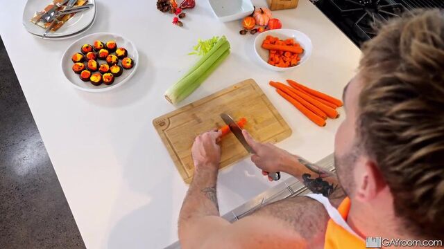 - Description: Tony Genius feasts on Trent Marx’s sexy chef’s uniform right before the turkey is done.