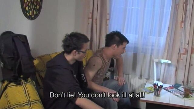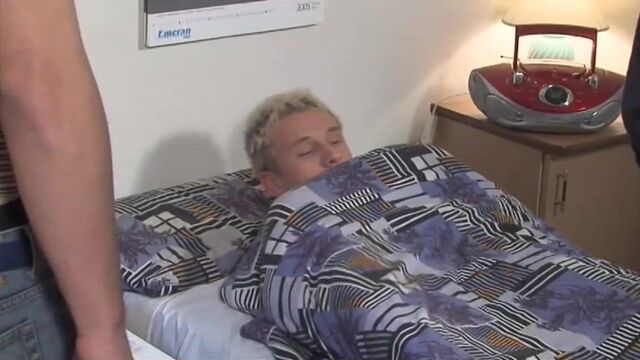 Sexy spiky blond twinks fakes a sick day form school but his two boyish mates don't believe a word of it and decide to get a three way going. All three are cute indie kids who have cute bodies, uncut cocks and fabulous arses. After some nice cock sucking our sick blondie gets jacked off with the thermometer up his arse whilst the twinkiest guy takes his hot load in his mouth.