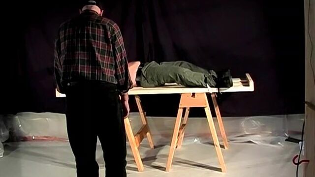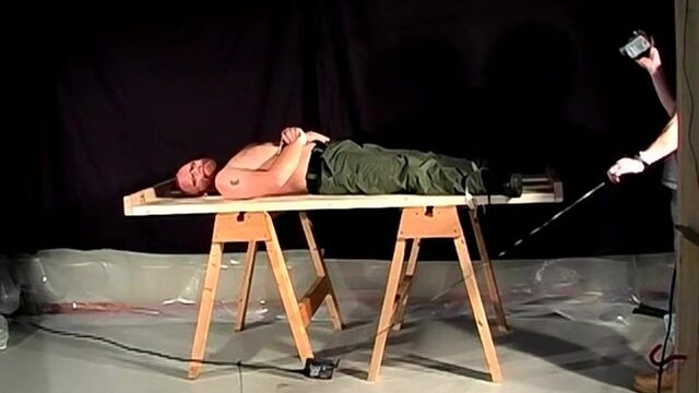 Pooch, David and Buzzcut like to keep their heads shaved and it looks as though two of them need to be shaved. They take turns shaving one another's heads before a third bear shows up for some ass rimming and cock sucking fun. Before that though, one is tied to a table and made to service his older buddy's rock hard dick with his talented mouth!
