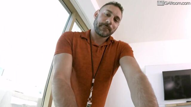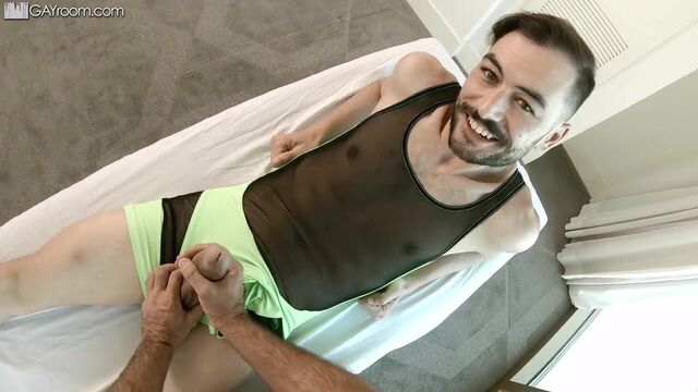 - Description: Athletic twink lures coach into a sports massage and surprises him with a big dick to suck.